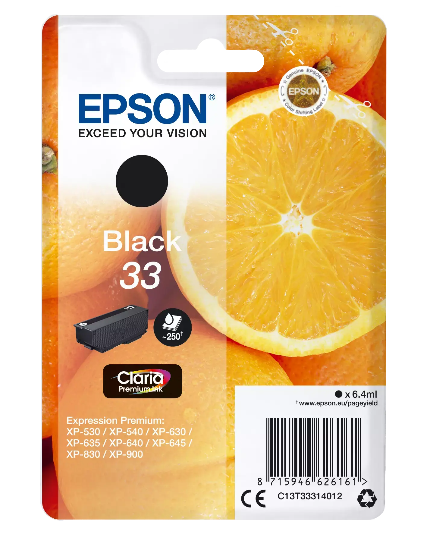 Epson Oranges C13T33514012, Højt (XL) udbytte, Sort, Pigmentbaseret blæk, 12,2 ml, 1 stk